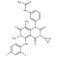 UNII-33E86K87QN GSK 1120212 GSK-1120212 Mekinist N-(3-{3-Cyclopropyl-5-[(2-fluoro-4-iodophenyl)amino]-6,8-dimethyl-2,4,7-trioxo-3,4,6,7-tetrahydropyrido[4,3-d]pyrimidin-1(2H)-yl}phenyl)acetamide Acetamide, N-[3-[3-cyclopropyl-5-[(2-fluoro-4-iodophenyl)amino]-3,4,6,7-tetrahydro-6,8-dimethyl-2,4,7-trioxopyrido[4,3-d]pyrimidin-1(2H)-yl]phenyl]- GSK1120212 JTP74057 Trametinib |